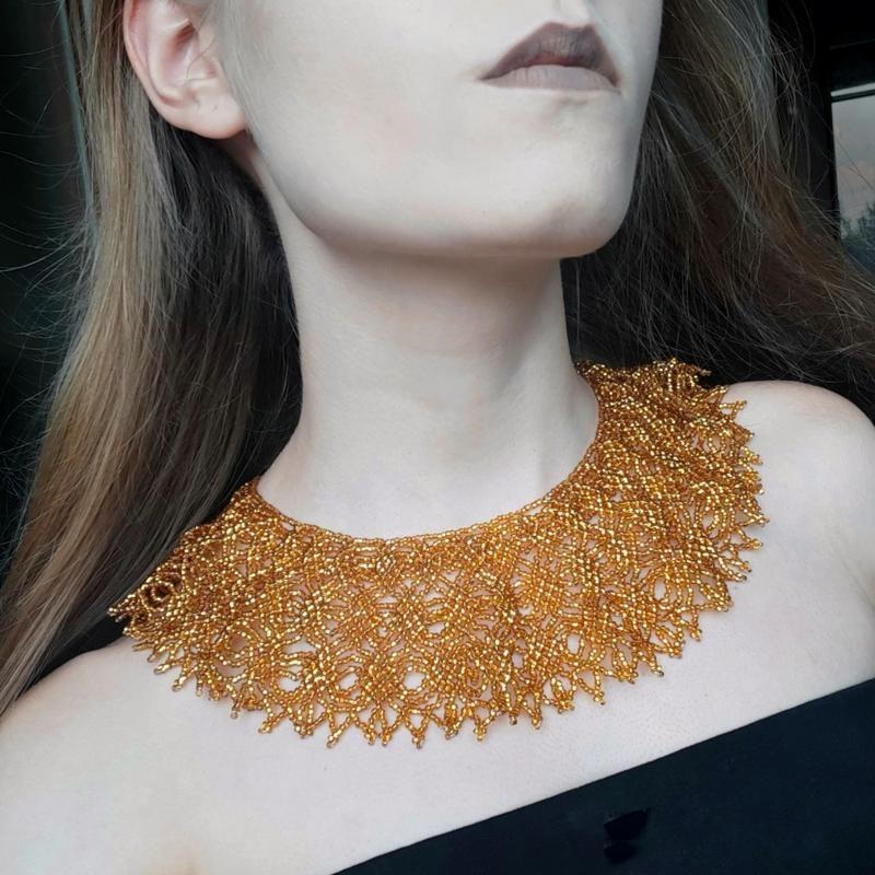 Золотистый воротник из бисера