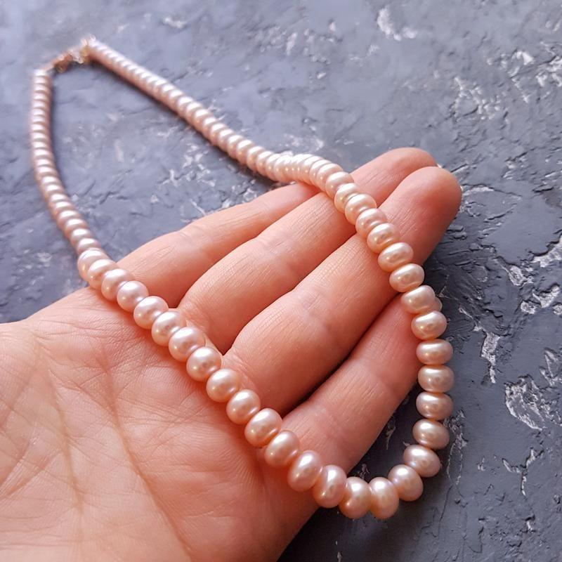 Намисто натуральних перлів з позолоченою застібкою. Колір перлин ніжний, рожево-персиковий. Я роблю будь-яку довжину намиста , потрібну замовнику. Вартість вказана за намисто, як на фото, довжиною 40 см. У випадку зміни розміру намиста у більшу сторону, вартість буде перерахована відповідно до потрібної вам довжини. На інших фото є комплект з сережки та браслет, що не входить у вартість, але також можуть бути замовлені окремо. Также вы можете заказать серьги-пусеты с 1 жемчужиной, или любые другие, по вашему вкусу в комплект к ожерелью, в серебре 925, позолоте или золоте 585. Все нюансы по заказу можно будет согласовать после оформления покупки. Дополнительные характеристики: Цвет : Розовый Камни / вставки : Жемчуг Материал : Бусины