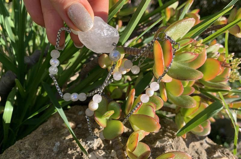 Колье с белым жемчугом и розовым кварцем ′амели′