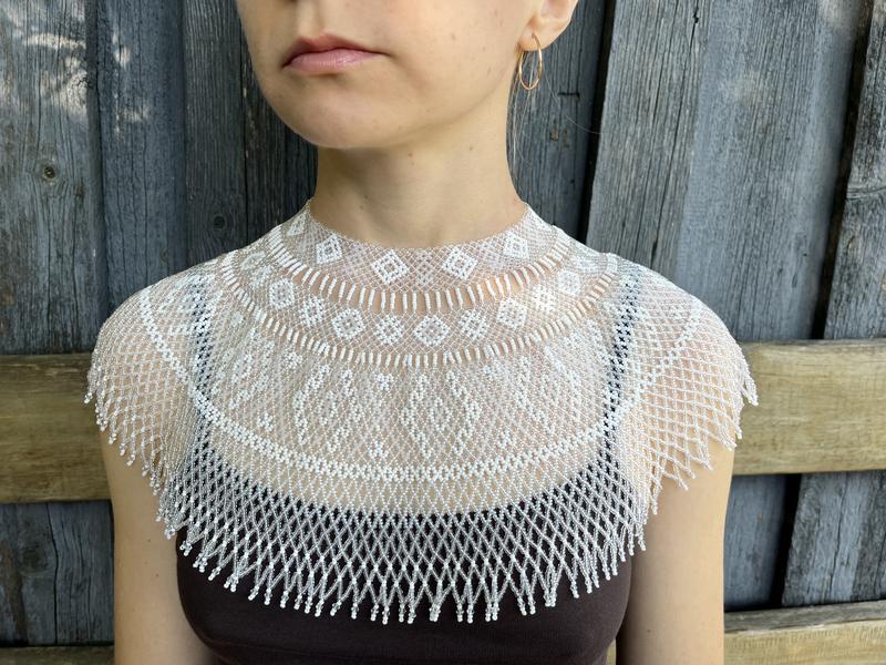 Мій TikTok nataliialadyka Заходьте у facebook Nataliia Ladyka ********************************************************** Силянка, криза, кривулька, гердан, комір ручної роботи з чеського та японського бісеру, застібка з ланцюжком, стрічкою або з плетеними завʼязками для регулювання довжини. Силянка запаковується в подарунковий мішечок на затяжках.