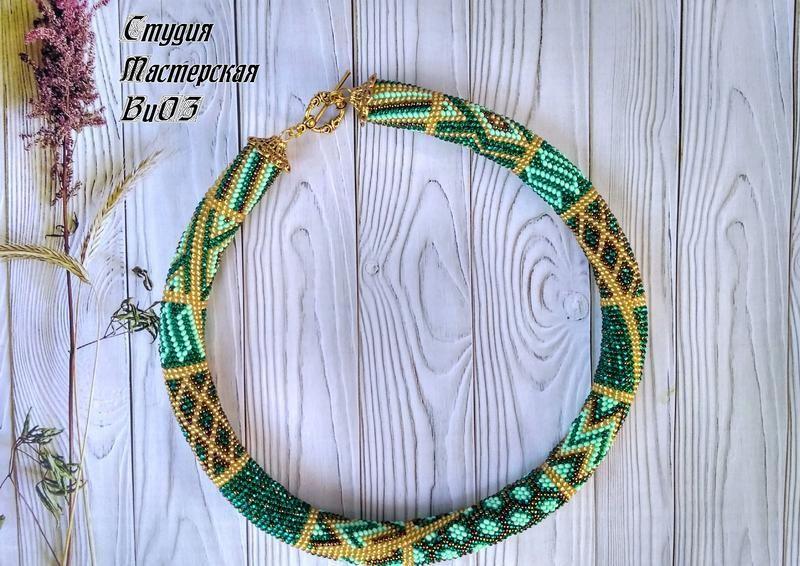 Внимание!!!Эксклюзив мастерской!!!Такого колье в продаже больше не будет !Жгут с узором в стиле пэчворк .Для любителей восточного колорита.В работе использован чешский бисер бирюзовых оттенков ,также песочный-золотой.Жгуты с таким узором всегда привлекают внимание,их хочется рассматривать