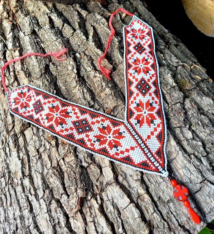 Угловой гердан "вышиванка" с бусинками, на завязках. Длина изделия 29 см + 17 см завязки. Товар под заказ