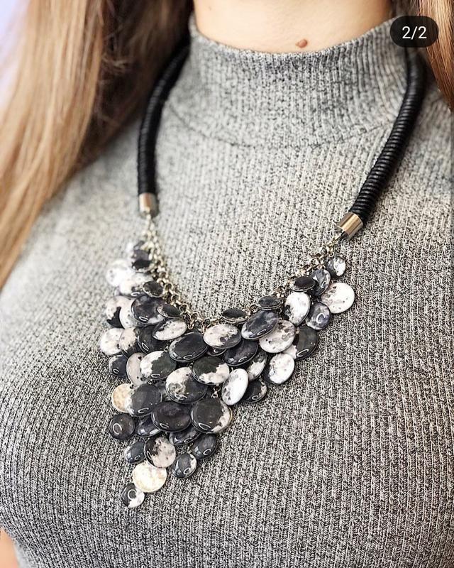 Колье ручной работы на кожаной жгутовой основе с гроздью подвесок- бусин из ювелирной смолы в виде луны в разных фазах. Размер колье регулируется за счёт добавочной цепочки. Дополнить колье можно серьгами или браслетом. Все товары представлены в каталоге ⬆️ Дополнительные характеристики: Материал : Натуральная кожа