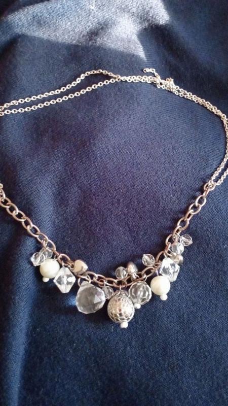 очень симпатичное колье с необічной застежкой - можно до груди опустить, а можно под горло одеть. Бусині , кристалики, сердечки очень нарядніе, на солнішке блестят. Очень приятное, свежеее, воздушное , єлегантное украшение. На фото зафиксирована длина 50 см...Тонкую цепочку можно носить отдельно, повесив на нее любой кулон. Получается и колье, и цепочка отдельно с любім кулоном))