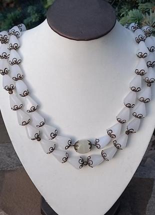 двурядне намисто,центральна намистина ніфрит,решта скло,масивне,ефектне, також дивіться інші мої товари, прикрас багато на любий смак та гаманець.