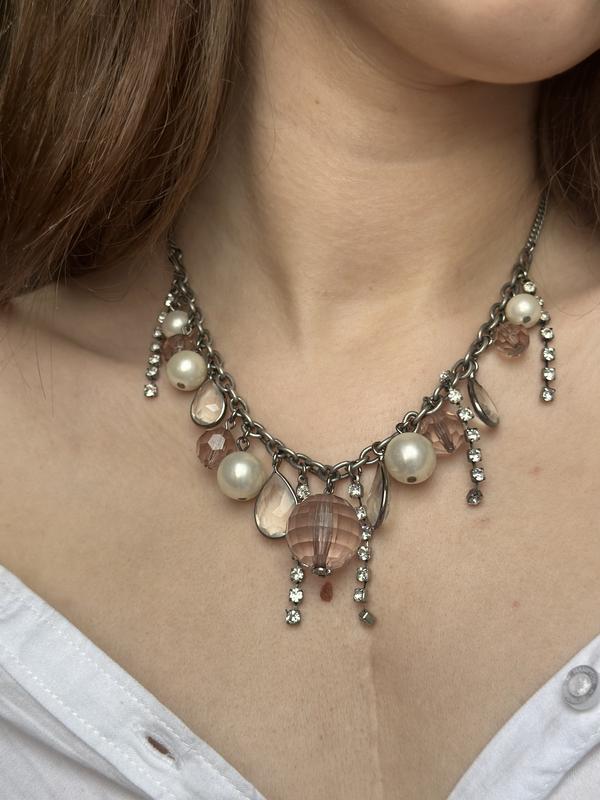 Колье серебристое со светлыми бусинами