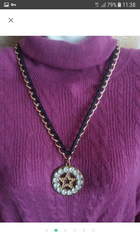 Подвес с камнями на цепочке с лентой. Длина 63см.кулон диаметр 4 5см.