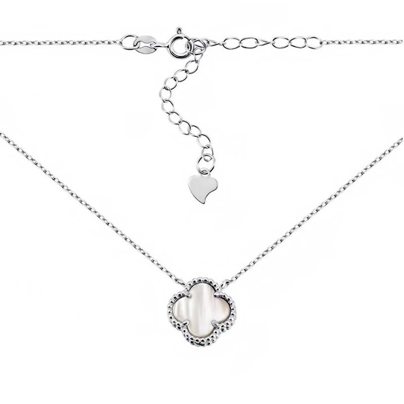 Серебряное колье клевер с перламутром, размер 43 см x 0,1 см, вес: 2.7 г
