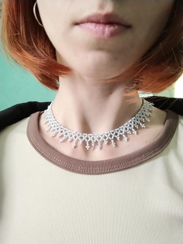 Белая тонкая силика с прозрачными акцентами, карабин с удлинителем.