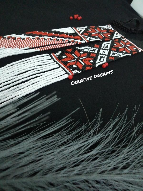 Український гердан,ручної роботи. Виконаний з якісного чеського бісеру. Довжина: 50см,Ширина плетеної сторони: 4.2 см. Деталі запитуйте у повідомленнях,з радістю відповім! Можливе виконання по вашому зразку. Дивіться інші наші оголошення,є великий асортимент та хороші знижки у соц мережах Creative Dreams!Підписуйтесь!!