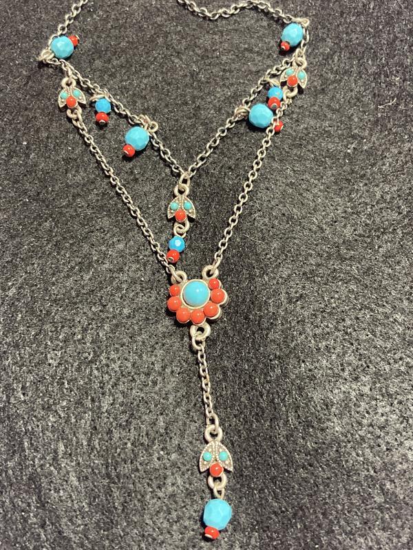 Колье в серебряном тоне винтаж длина цепочки 40+7см,длина подвески 11см вставка пластик