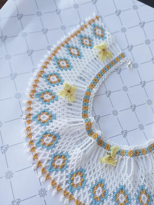 Силка ❤️ Вдохновение, аутентичное украшение, украинское наследие ❤️🇺🇦 силика в удивительно нежных цветах ❤️ белый, горчичный, голубой Силка будет прекрасным дополнением вашего образа, подходит как к вышиванке так и для повседневной одежды ❤️ ширина 7 см возможно исполнение в других цветах с точным номером цвета бисера( преисика10) +200 грн если цвет выбирается по вашей фантазии + 100% до цены