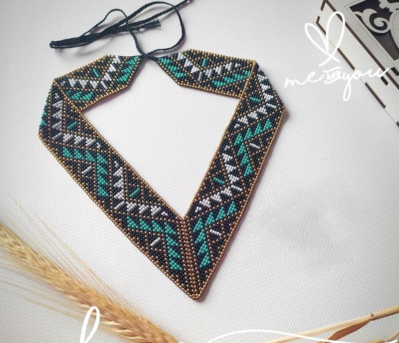 Гердан угловой изготовлен из чешского бисера в технике станочного плетения. Длина регулируется завязками.
