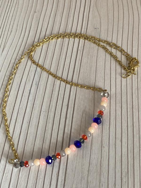 Колье винтаж бусины стекло пластик цепочка цвета лимонного золота длина 50+7см