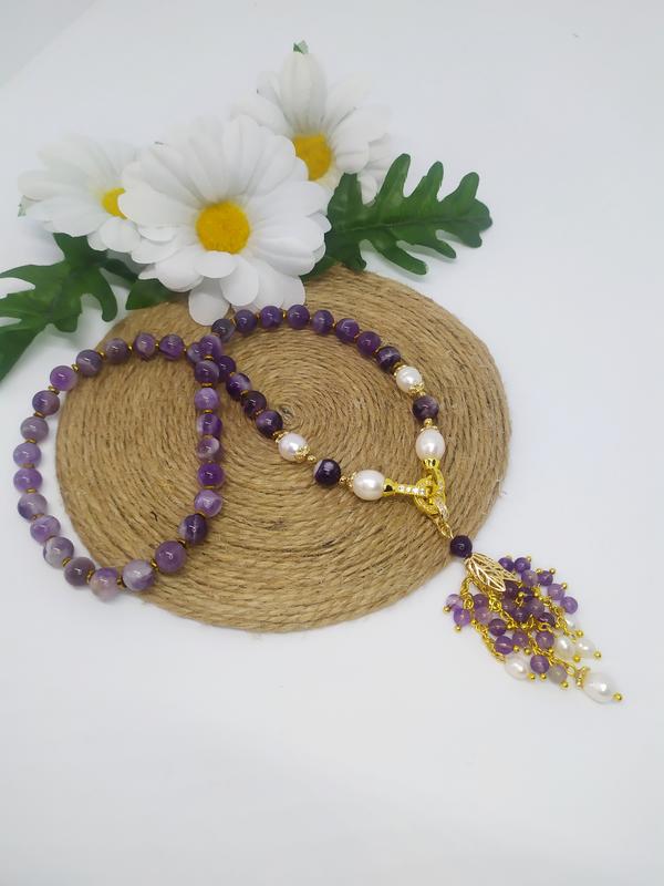 Кольє трансформер з аметистом та перлами "бузковий цвіт"