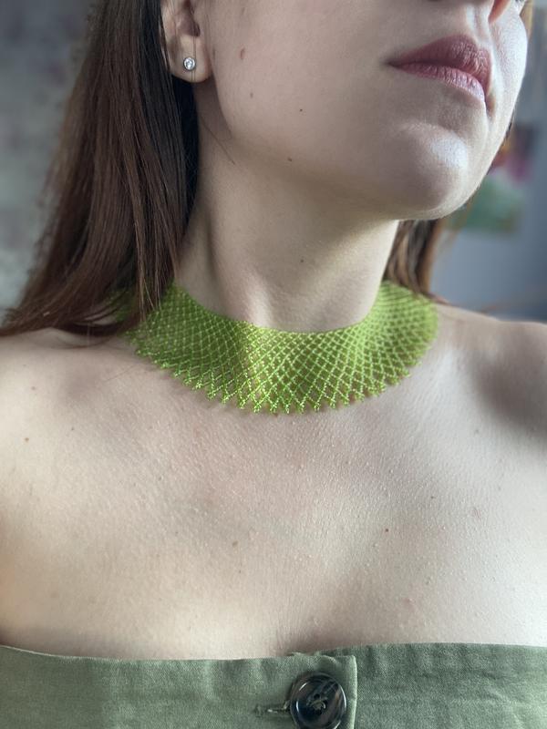 Невероятная изумрудная однотонная силянка. Длина изделия 35 см. + удлинитель 6,5 см. Ширина - 4 см. Схема Лилии Цветки. В наличии.