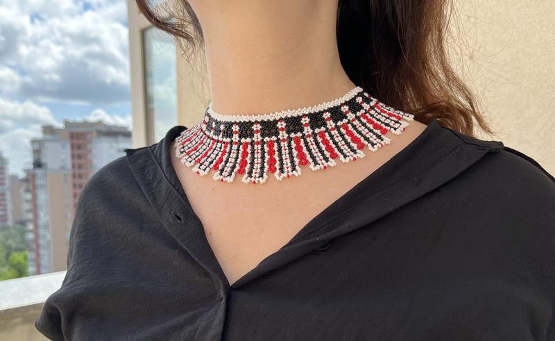 Силка - современное и очень красивое украшение! Выполнена в классических цветах, подойдет под любой образ. Длина ( по внутреннему краю) - 39-40 см, ширина - 5,5 см. Также можно добавить удлиняющую цепочку для регулировки длины. Качественный замочек из нержавеющей стали. Возможен повтор в других цветах и по вашему размеру.