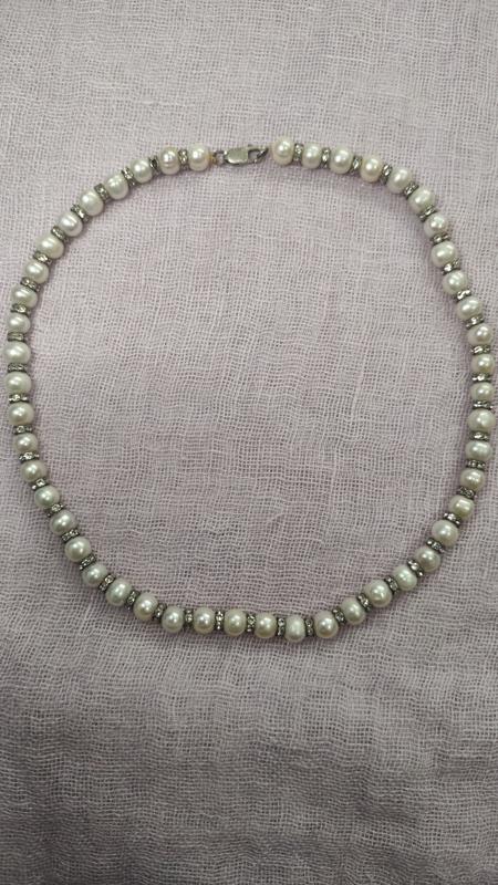 Ожерелье с жемчужинами со вставками, застежка из серебра, длина 48 см ширина бусинки 0.5 см красивом состоянии