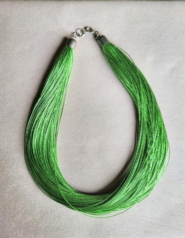 Яркое ожерелье из тоненьких веревочек создает неповторимый образ, очень свежий, молодежный. Он сразу привлекает внимание и делает вас очень современной, активной и легкой.