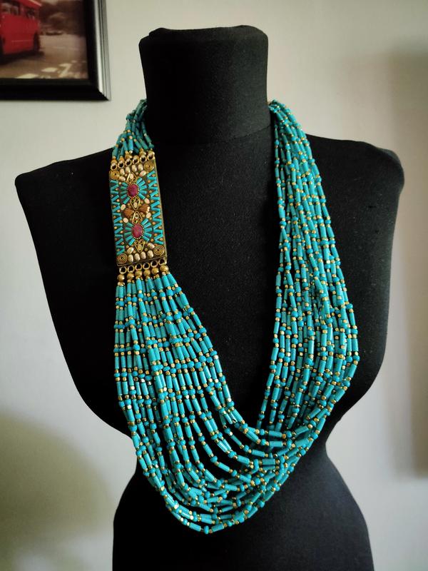 восточное колье, бусы, из натурального камня рубина .винтаж. бусины под бирюзу скорей всего керамика. 18 нитей. полная оплата на карту банка!