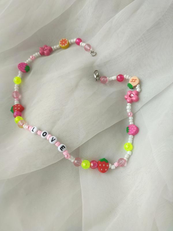 Намисто з фруктами та бусинами, надпис можна обрати будь-який. Творю для тебе з любов'ю💗