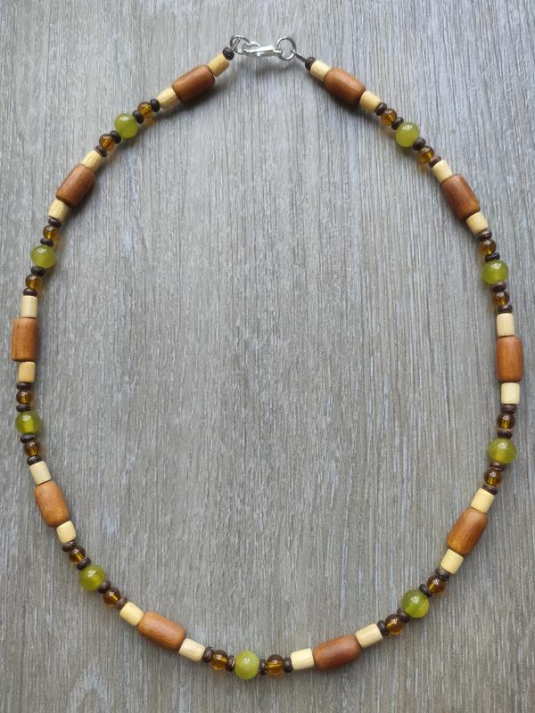 Тренд эко чокер, колье, ожерелье, подвеска, бусы, кокос, дерево, оникс, янтарное стекло в...