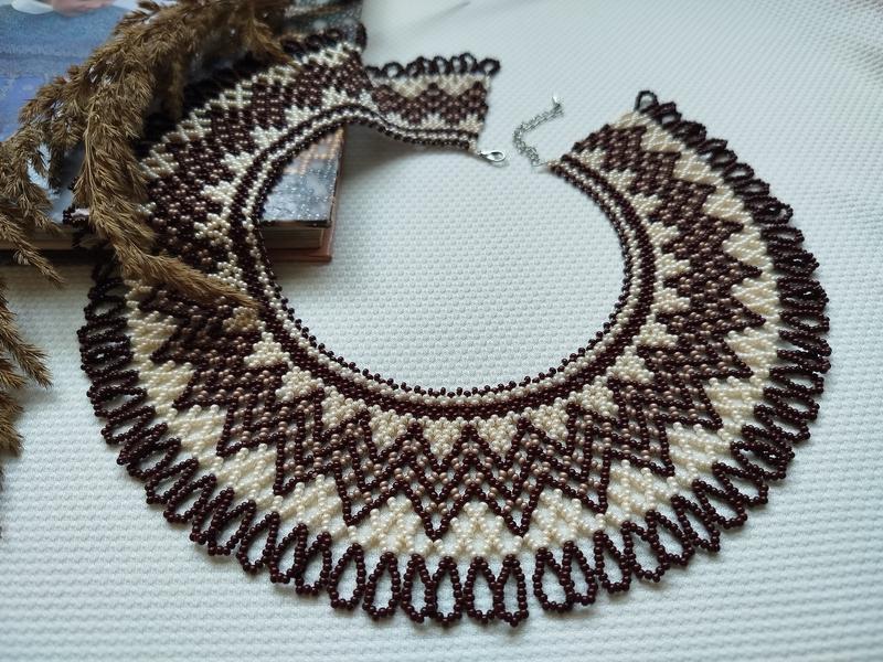 Шоколадная силянка, выполненная из чешского бисера длина 39см+ 5см цепочка, ширина 6см, цена 750грн