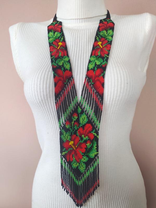 Гердан изготовлен из чешского бисера в технике станочного плетения. Длина бусина около 55 см, ширина нижнего кулона 7, 5 см