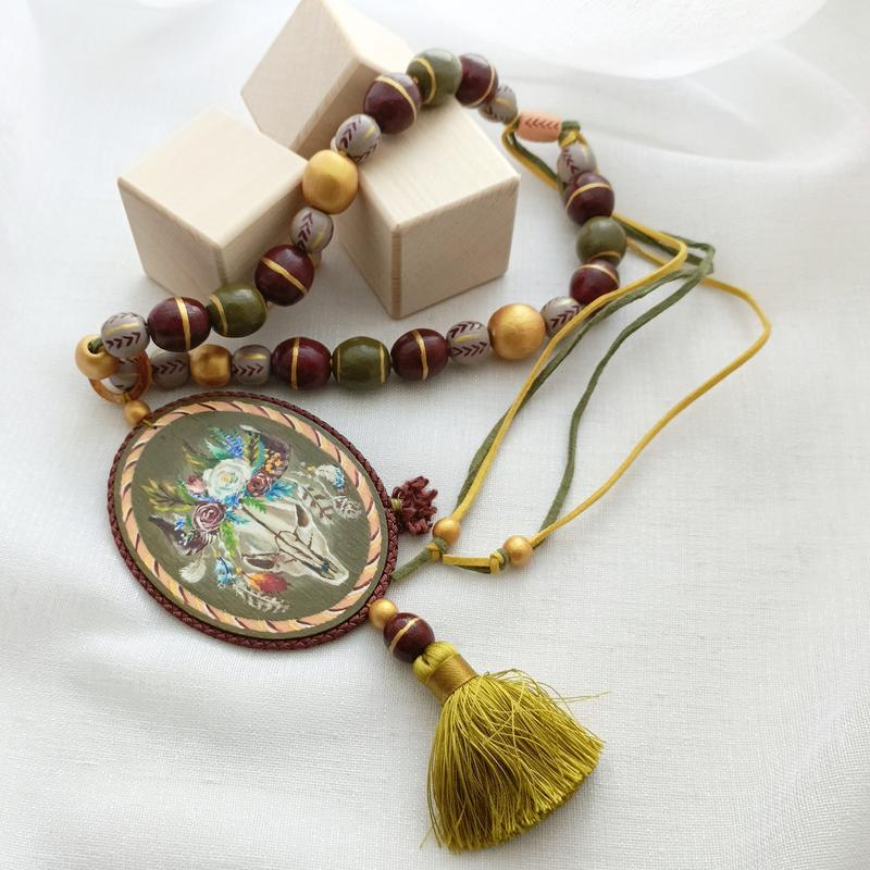 Изысканные древесные бусы в стиле бохо ручной работы.
