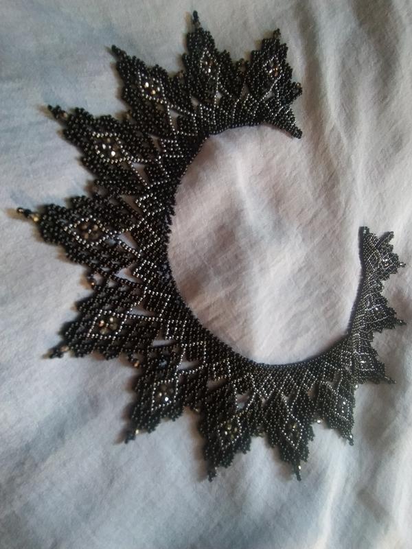 Ожерелье "Черное сеточно", из чешского бисера и бусин. Хрупкое, нежное и изящное украшение. Силка, завораживающая взгляд. Стразы сверкают, сияют как при дневном свете, так и в помещении.