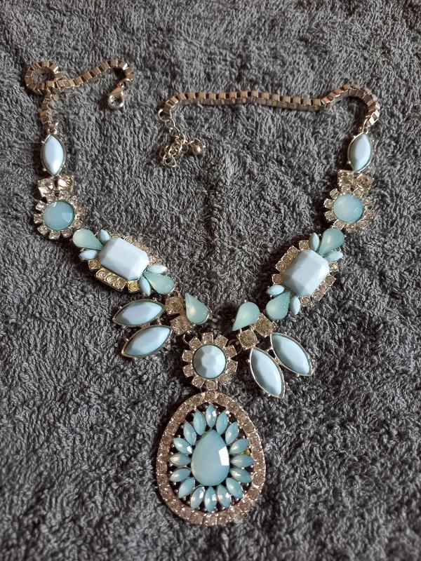 Красивое ожерелье с голубой отделкой, все камушки на месте