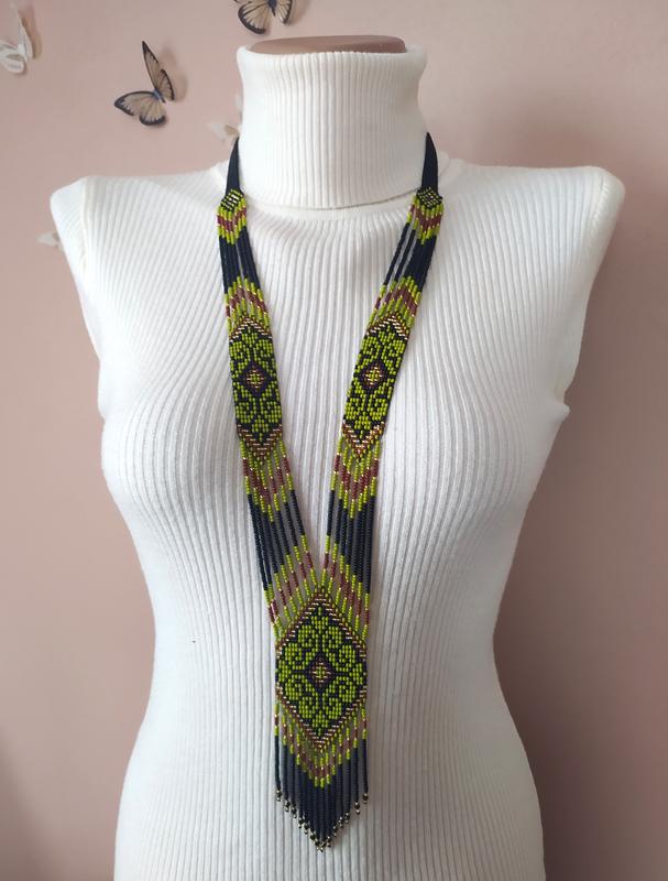 Гердан изготовлен из чешского бисера в технике станочного плетения. Длина ожерелья около 50 см, ширина нижнего кулона 4, 5 см. По желанию заказчика можно изменить длину ожерелья и изменить цвет. Всезина к заказу в уведомлении