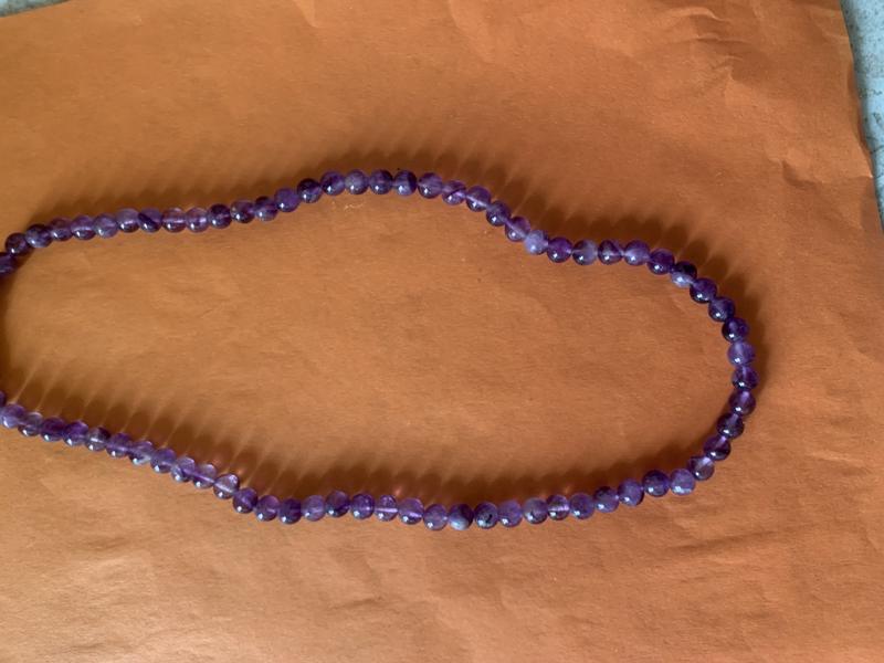 Намисто з натурального каменю аметист,кулька,гладкий,колір фіолетовий,довжина 47см.