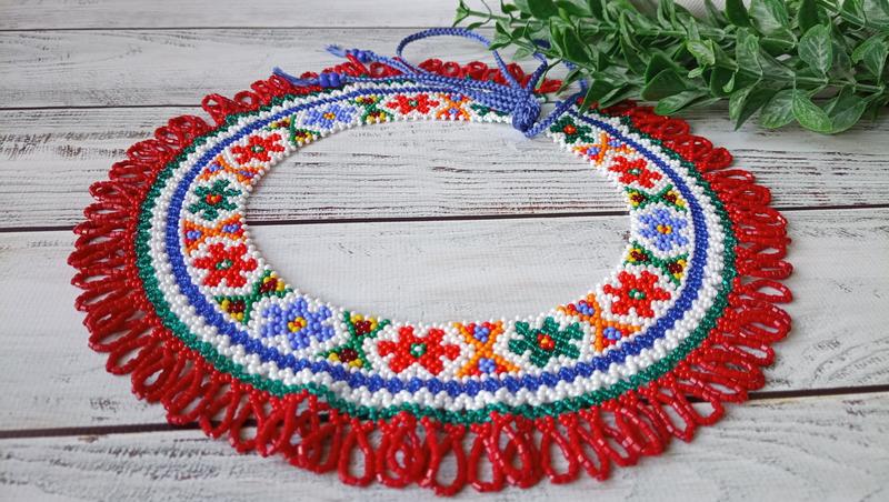 Украшения Гуцульщины начала ХХст. Длина силянки вокруг шеи-40см. Ширина силянки-5см. Чешский бисер, чешская рубка, прочная нить. Завязки по-30см, ими удобно регулировать длину. Изготовление по заказу, 4-5днев.