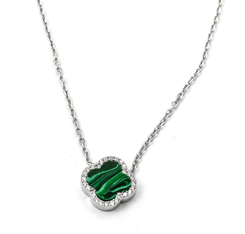 Колье клевер с малахитом