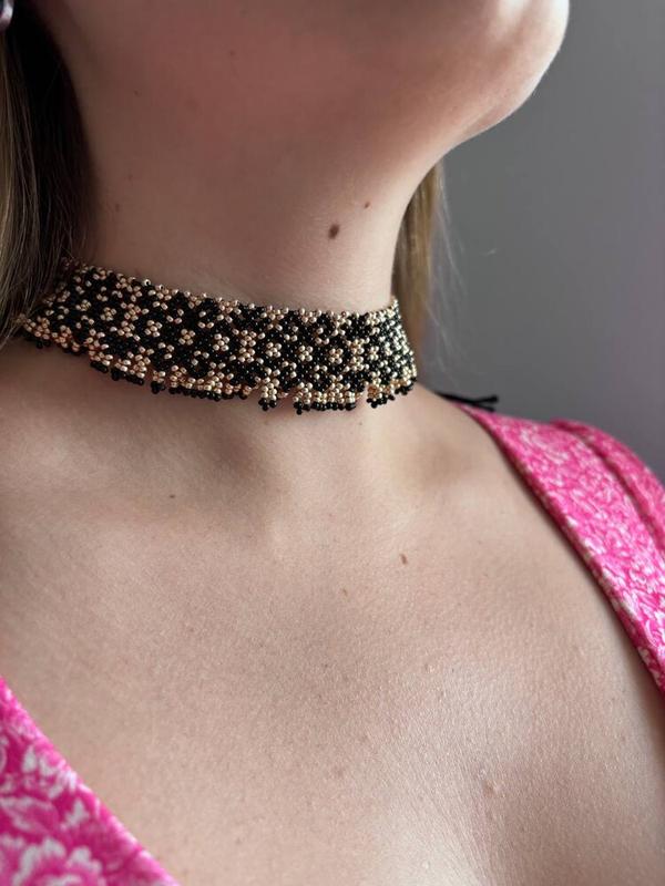 силянка чорного кольору.виконана з чеського бисеру.довжина 34см.ширина 3см.на завязках