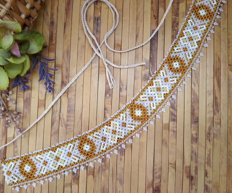 Выполнена из чешского бисера Длина 33,5 см Ширина 3.5 см Длина завязки 34 см Ручная работа.