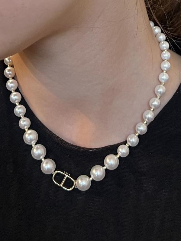 Подвеска диор вся из жемчуга с логотипом, позолота 18к