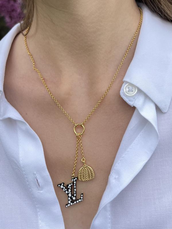 Подвеска луи вюиттон с черно-белым логотипом из букв, позолота 18к