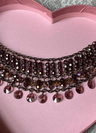 Красивое колье ручной работы из металла и бусин чешского стекла. Длина с застежкой 45 см Длина участка с камнями 17 см Ширина участка с камнями 5 см