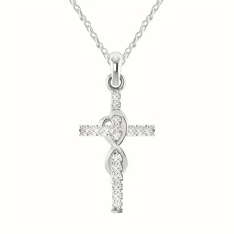 Сріблястий хрест зі знаком нескінченності на ланцюжку