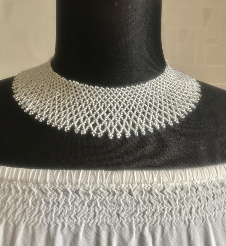 Етноприкраса силянка виконана з чешського бісеру прозорого з білою серединкою , фурнітура металева в срібному кольорі з подовжувачем, вигляд і розміри на фото. відповім на всі питання, відправлю зручною вам поштою після оплати на картку Приват чи Моно, читайте в розділі « про мене «, безпечна оплата і накладний платіж по передплаті тільки новою поштою