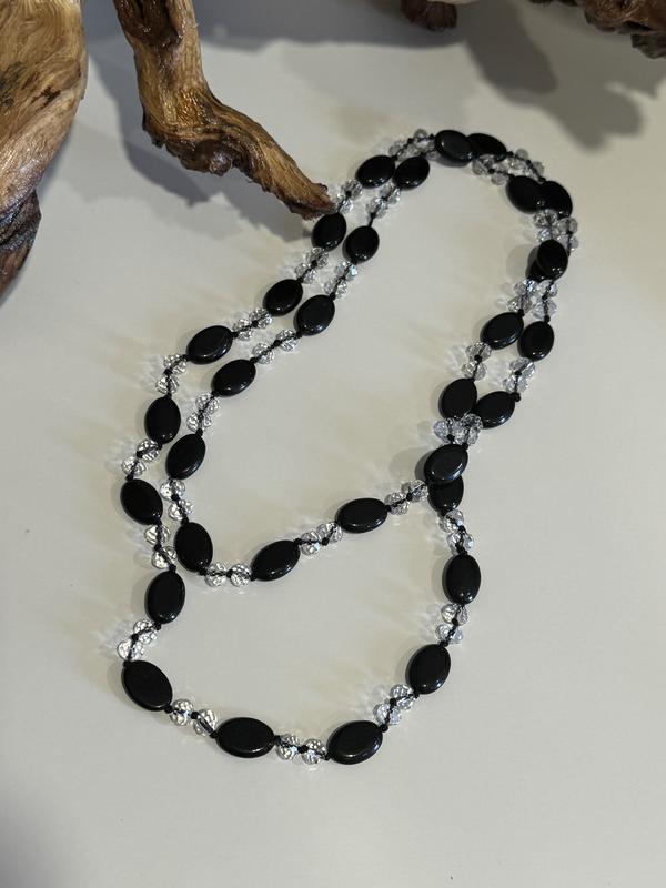 Бусы из прессованного агата и стеклянных бусин Длина 120см