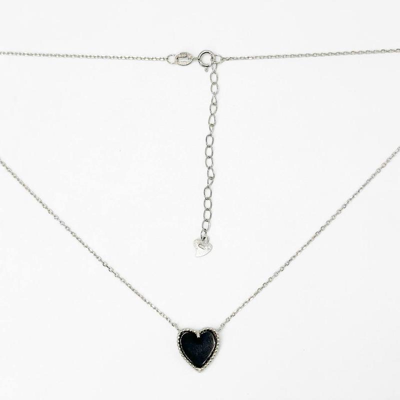 Серебряное колье сердечко с ониксом, размер 40,5 см x 0,1 см, вес: 2.8 г
