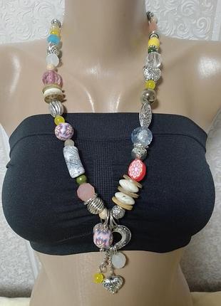 светлый металл бусины разные, из разных материалов длина регулируется от 62 до 67 см Отправляю укрпоштой или новой почтой после оплаты на карту наложки нет перед покупкой задавайте вопросы по товару приятных покупок)