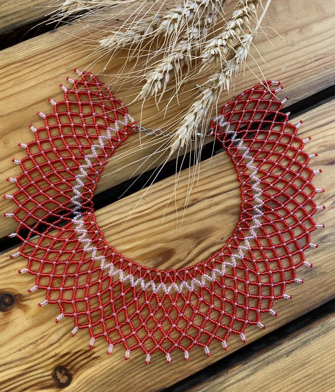 Украшение из бисера, ручная работа Длина 34 см + 7,5 см застежка Ширина 6 см Снижка при покупке вместе с корсетом!