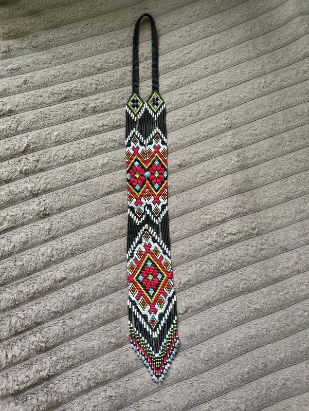 Ручная работа, изготовленная из чешского бисера первой категории.Длина шейного пояска 30 см. Вес 90 г