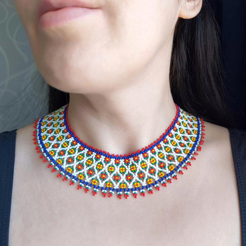 Силянка "Барвиста" ❤️💙💚🤍 🔹качественный чешский бисер Preciosa 🔹прочная нить для бисероплета 🔹фурнитура из медицинской стали (гипоаллергенная, не ржавеет) 📏Длина по внутреннему кругу полотна (не учитывая застежку) – 40 см + 5 см удлинитель (или по вашим меркам. Необходимо знать обхват шеи ближе к плечам) 📏Ширина – 4 см