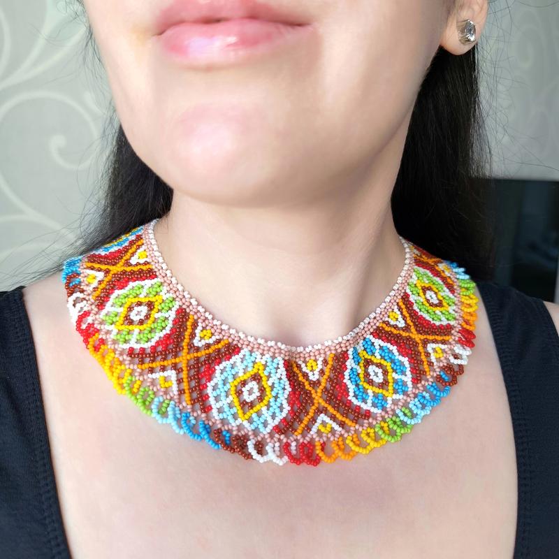 Силка "Веселочный предохраняет" ❤️💙💚🤍 🔹качественный чешский бисер Preciosa 🔹прочная нить для бисероплета 🔹фурнитура из медицинской стали (гипоаллергенная, не ржавеет) 📏Длина по внутреннему кругу полотна (не учитывая застежку) – 45 см + 5 см удлинитель (или по вашим меркам. Необходимо знать обхват шеи ближе к плечам) 📏Ширина – 5 см