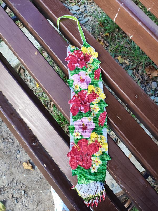 Гердан ручной работы, выполненный из чешского бисера первой категории, длина шейного пояска 33 см. Длина от пояска 55 см со снизками. Вес изделия 170 г.Подойдет для высокой женщины